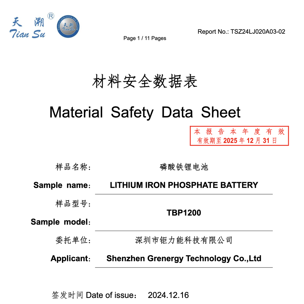 Warranty: Buy with confidence. The SunCase™ 1213 comes with a 24-Month Limited Manufacturer's Warranty and carries major certifications including UN38.3 and UL1973 (Cell).